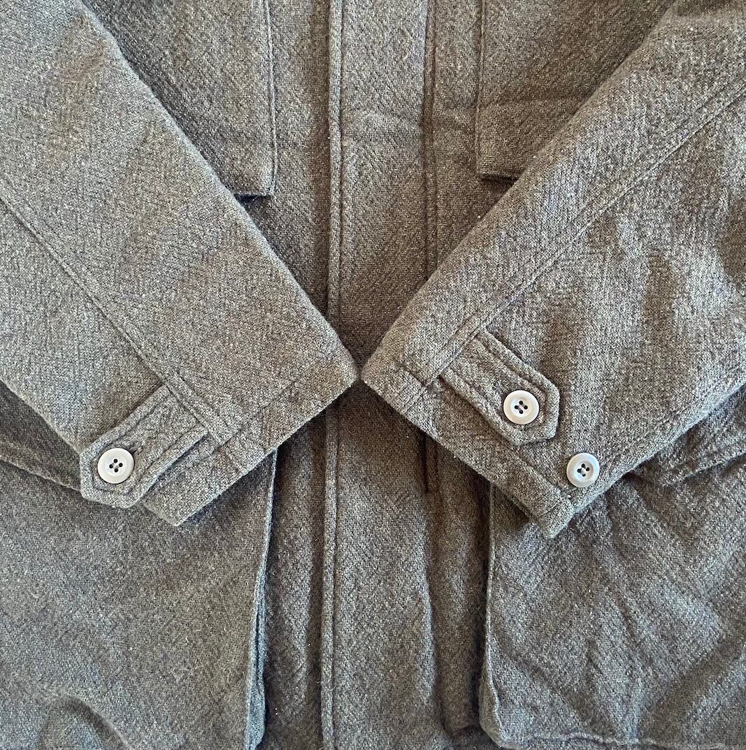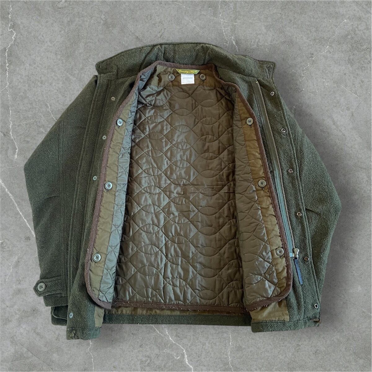 M-65をモチーフにしたウールジャケット。着脱式キルティングライナーが付属。フードは収納式になっており、裾部分にはドローコードが付いています。キルティングライナーだけの着用もできる高機能ジャケット。