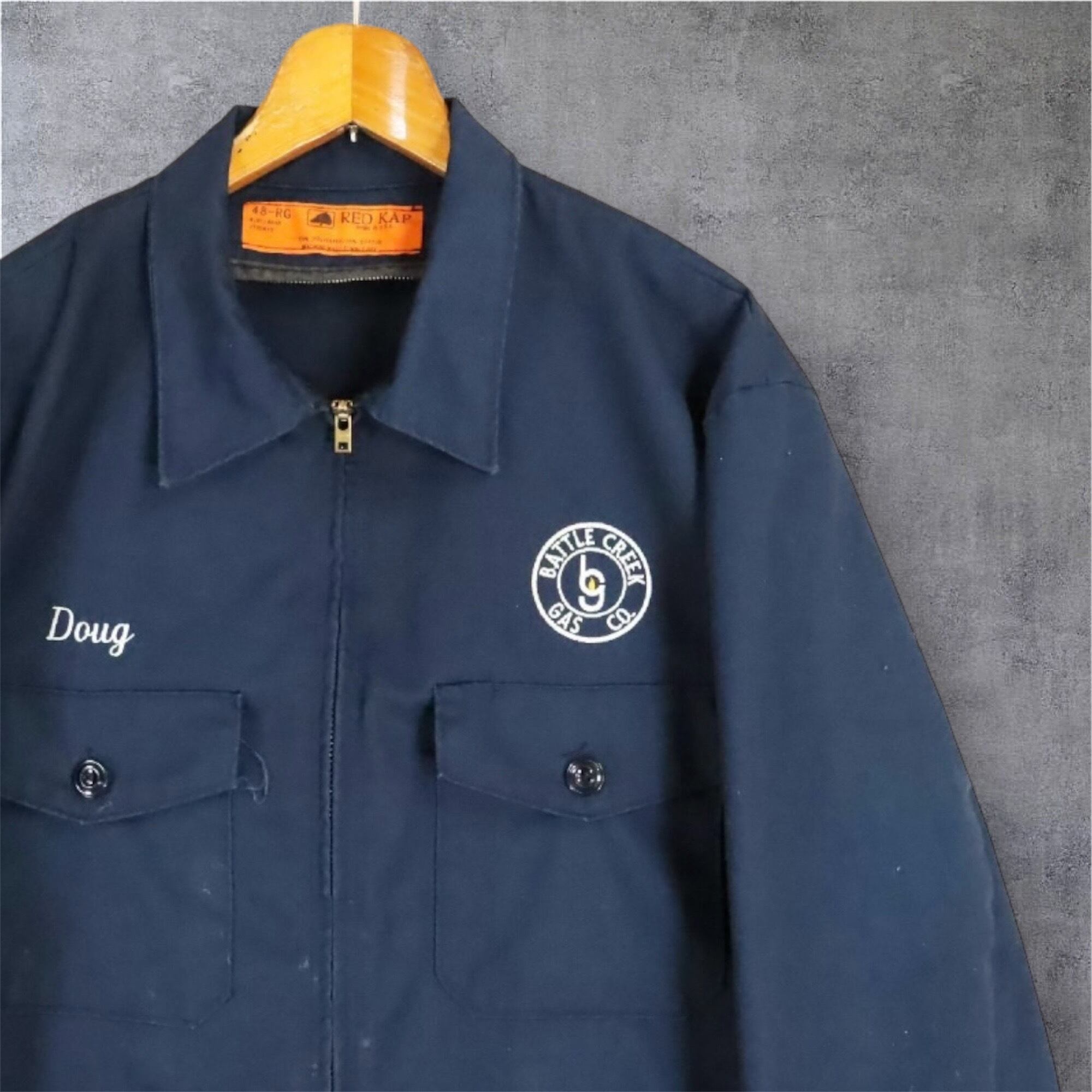 REDKAPの企業系ワークジャケット。フロント部分にポケットが2つ配置、ジッパーはTALON社のを採用。スケーターやバイカースタイル、アメカジ好きにおすすめ。