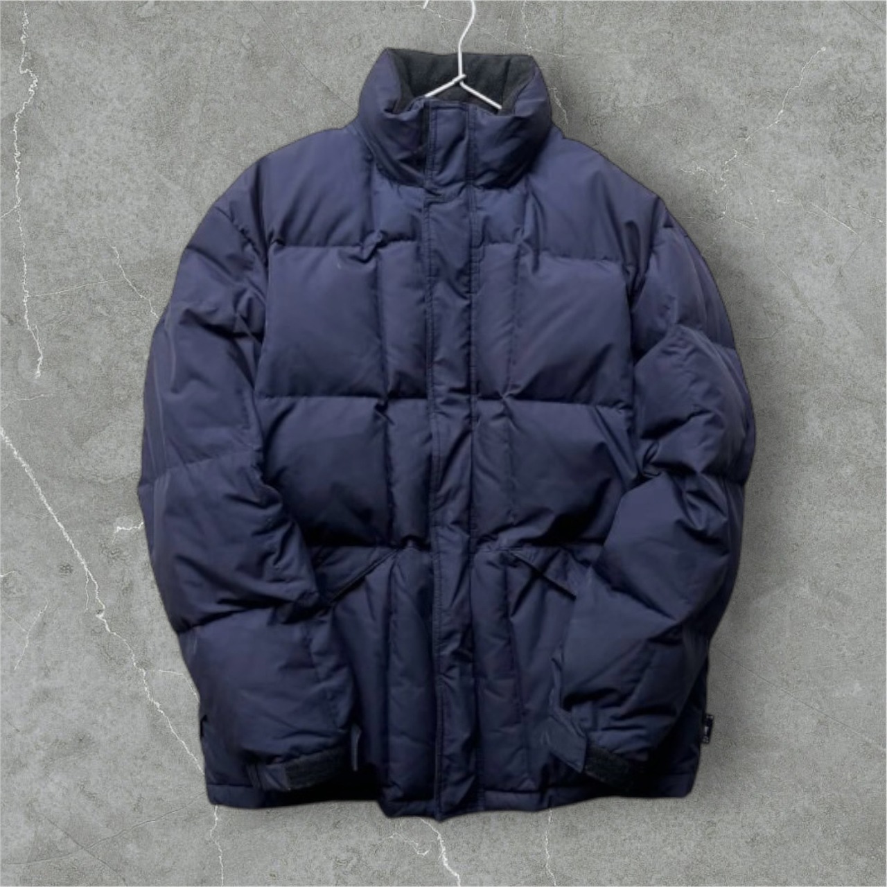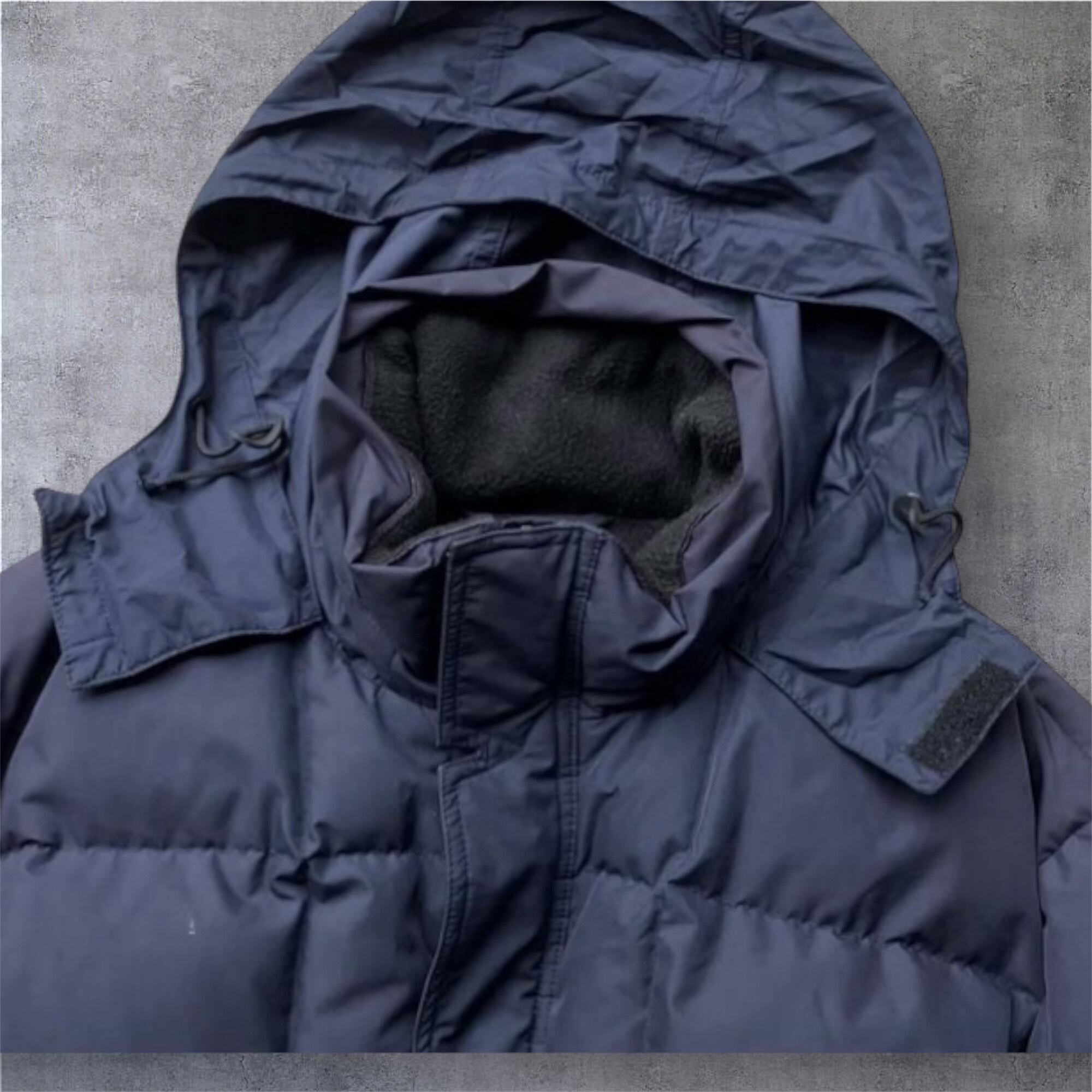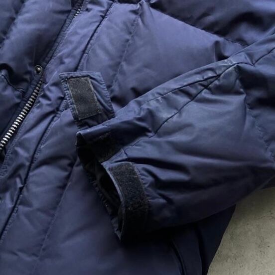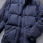 撥水性と防風性に優れたポリエステル素材を使用した一着。中綿にはダウンが封入されているので、軽くて防寒性に優れています。フード付きで、フードは襟元に収納可能。