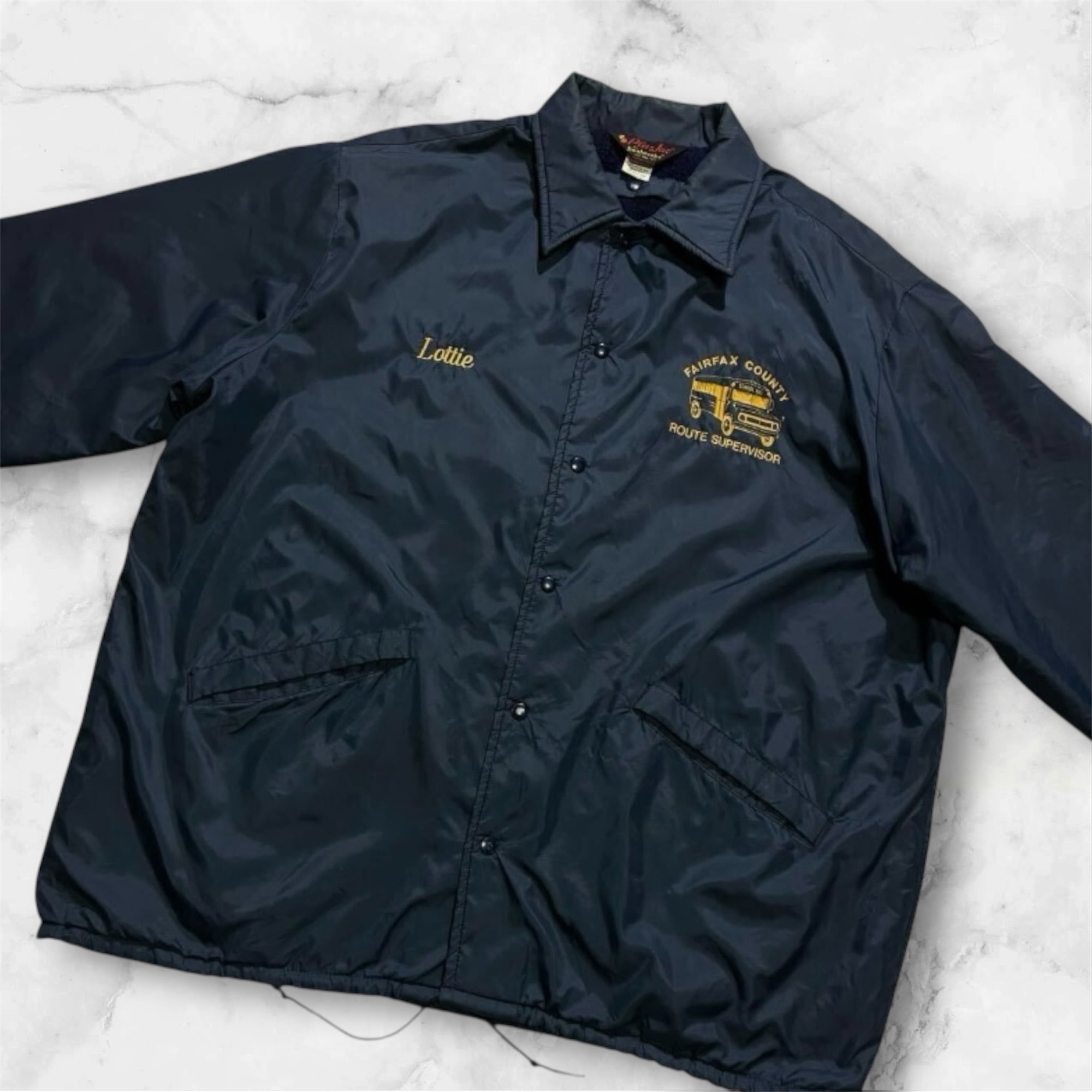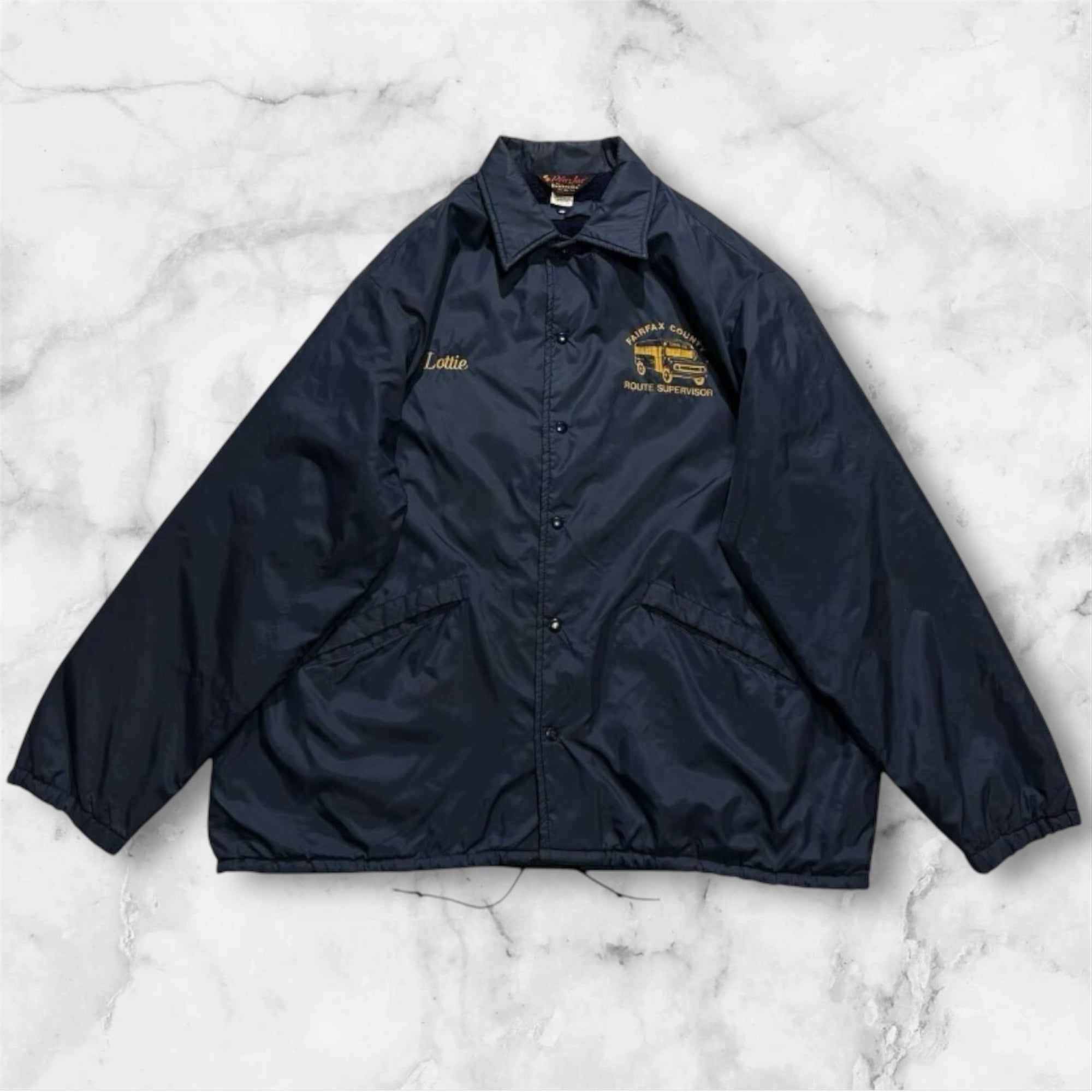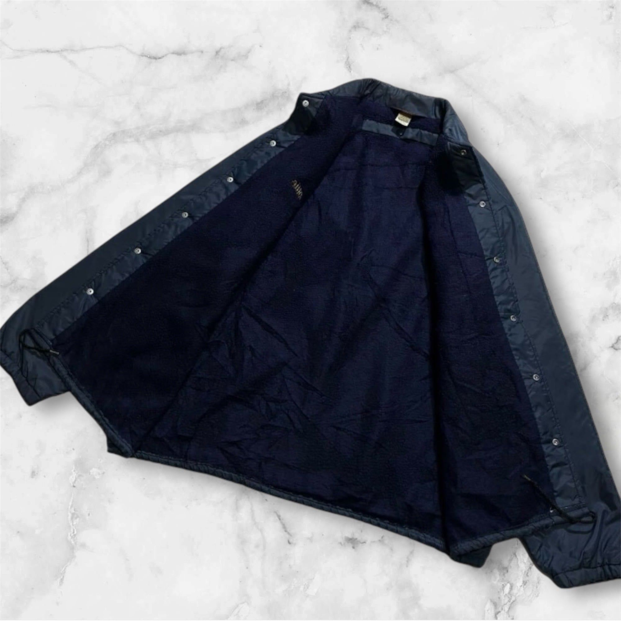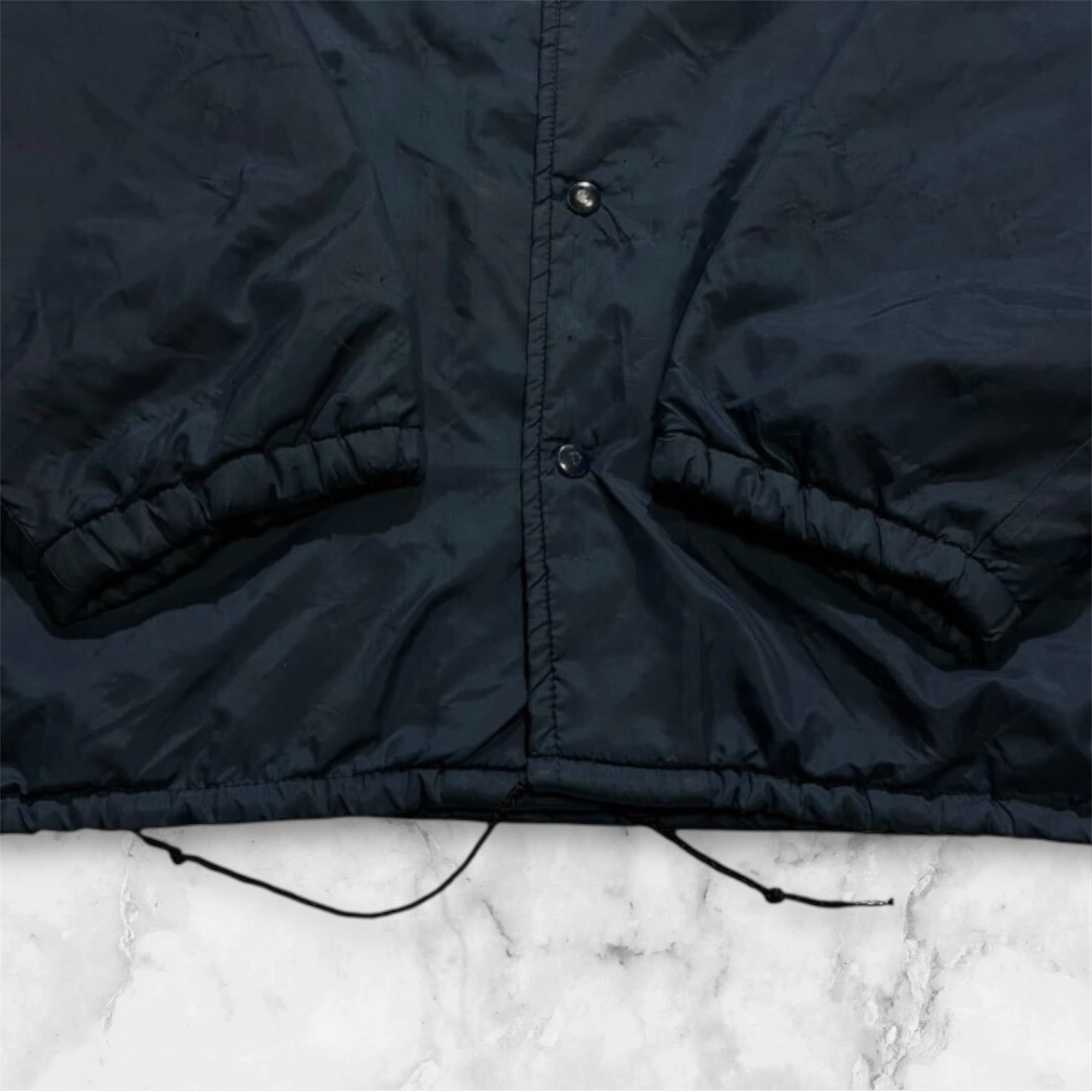 企業系のコーチジャケット。ウエスト部分にドローコードがついており調節が可能。表生地と裏地の二重構造になっているコーチジャケット。