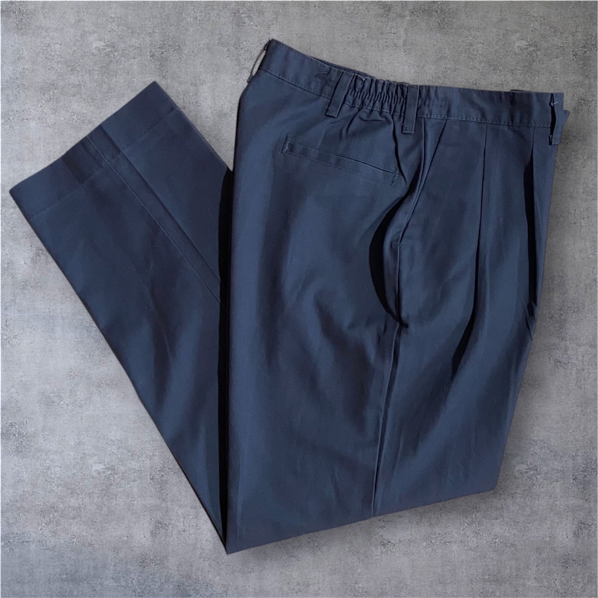 ウエスト両サイドにツータックがゆとりのある腰回りのデザイン。ややワイドシルエットで「PT38」のようなシルエット。